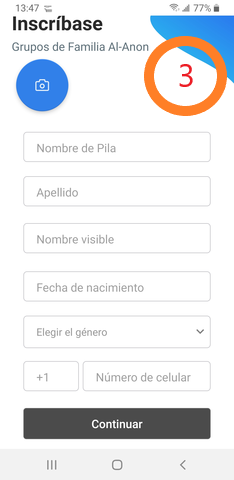 i. * Una imagen de perfil es opcional pero puede ser añadida pulsando el icono de la cámara